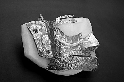 此次三星堆遗址考古发掘现场5号“祭祀坑”出土的残缺的金面具