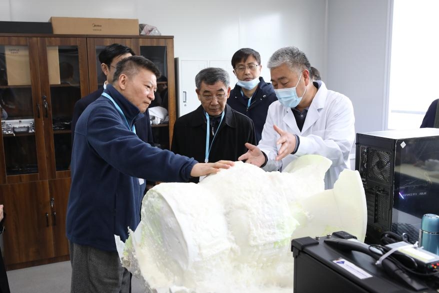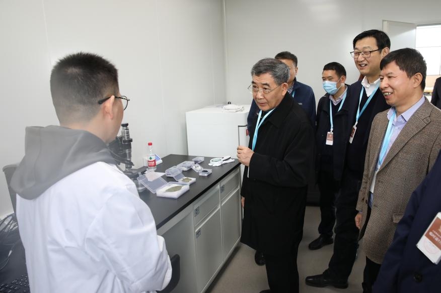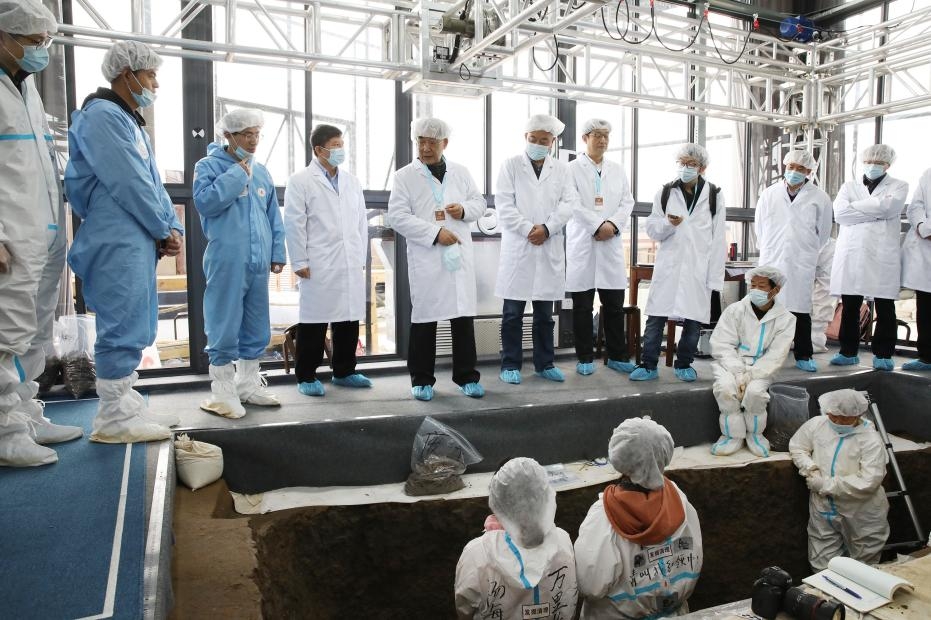 上午,王建国一行看望了参与考古发掘工作的我校15名教师和21名学生,调研了三星堆发掘现场科技考古实验室,听取了三星堆祭祀坑发掘工作汇报。