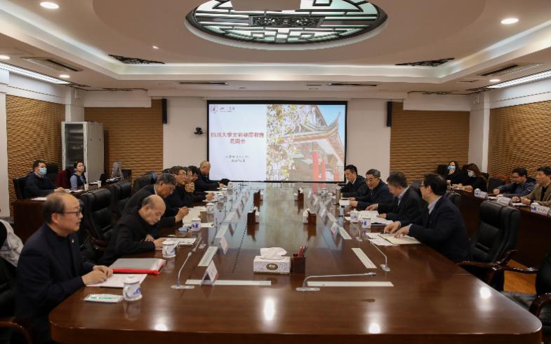 3月25日,学校在望江校区明德楼举行文科讲席教授见面会。校党委书记王建国,校长李言荣,副校长张林、姚乐野,学校首批文科讲席教授任晓明、陈学彬、李水城、张法、熊澄宇、吕建福、房宁,以及学校相关单位负责人参加座谈会。会议由张林主持。
