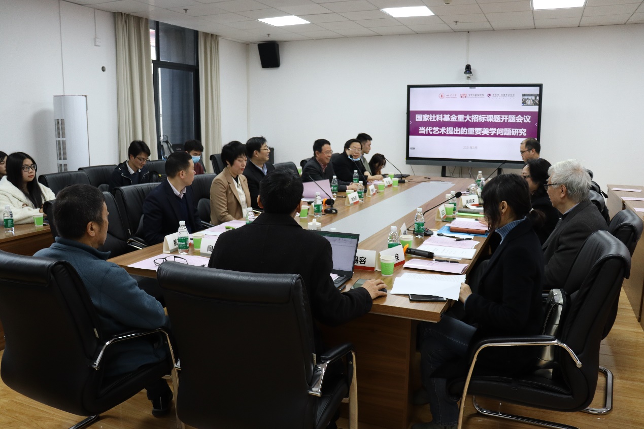 3月13日,文学与新闻学院“符号学-传媒学研究所”所长赵毅衡教授主持的2020年度国家社会科学重大招标项目“当代艺术提出的重要美学问题研究”开题报告会在江安校区举行。四川大学副校长姚乐野、四川省社科联规划办主任赵静、四川大学社科处处长傅其林、四川大学文学与新闻学院院长李怡出席会议并致辞。四川大学杰出教授曹顺庆、江西师范大学文学院傅修延教授、南京大学艺术学院周宪教授、中国社科院文学所研究员及深圳大学高建平教授、暨南大学文学院蒋述卓教授、东南大学艺术学院龙迪勇教授、四川大学艺术学院黄宗贤教授、四川大学文学与新闻学院阎嘉教授、四川大学文学与新闻学院金惠敏教授、四川大学文学与新闻学院吴兴明教授等校内外专家参加了本次会议。因疫情影响,开题报告会采取线上与线下结合的方式进行。会议由胡易容教授主持。